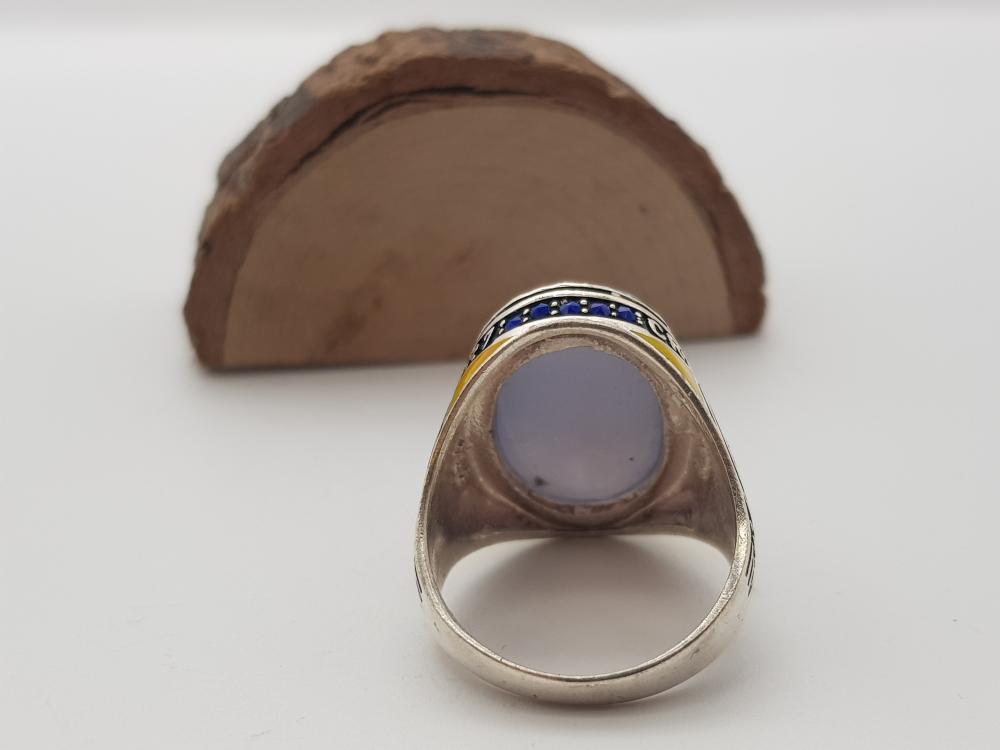 تم صناعة الخاتم يدويًا من العقيق اليماني الأصلي وتم صناعة التفاصيل الخارجية من الفضة النقية الخالص عيار 925 .
