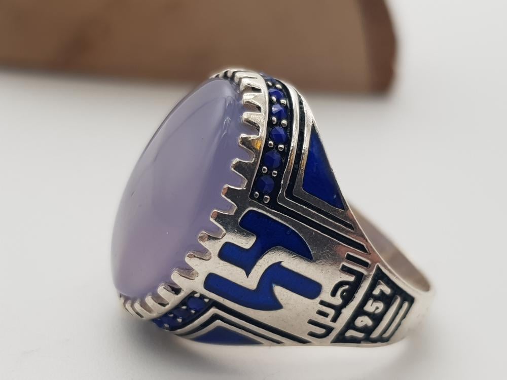 تم صناعة الخاتم يدويًا من العقيق اليماني الأصلي وتم صناعة التفاصيل الخارجية من الفضة النقية الخالص عيار 925 .