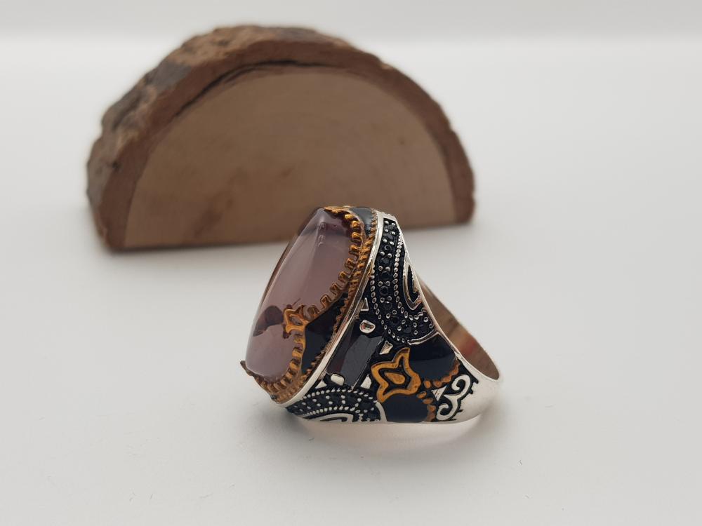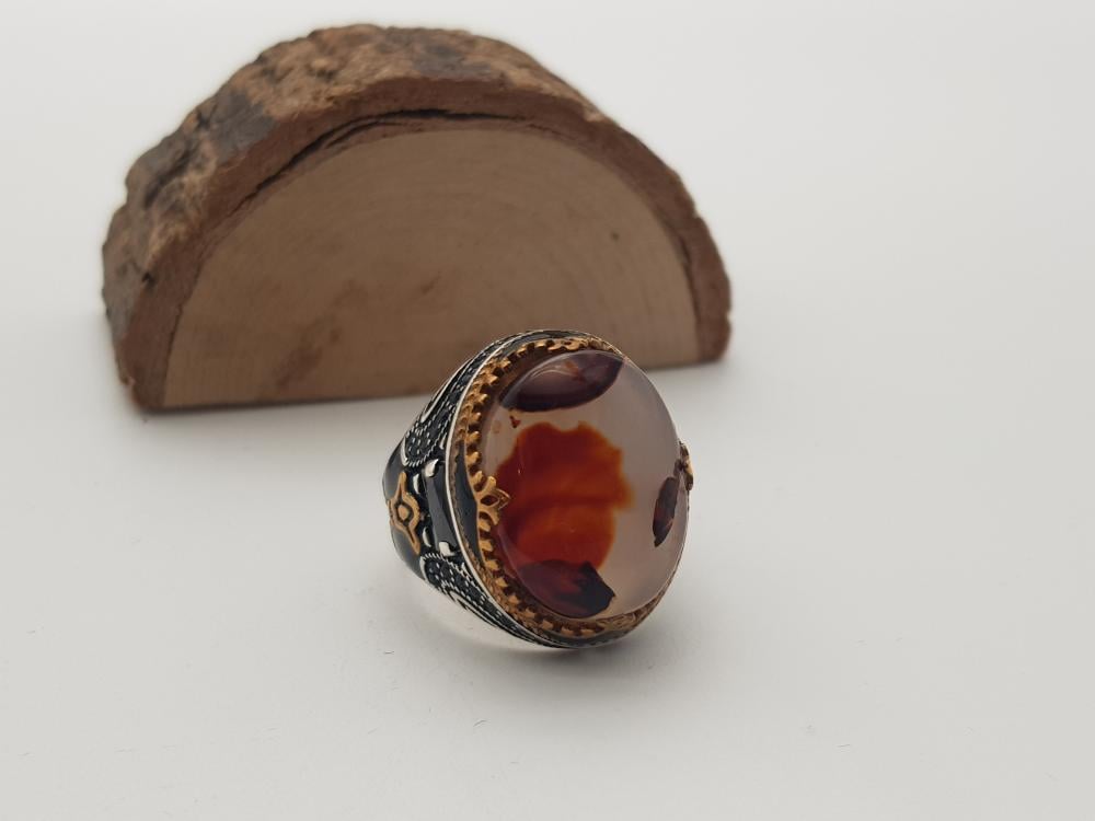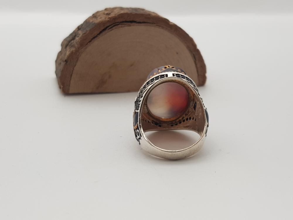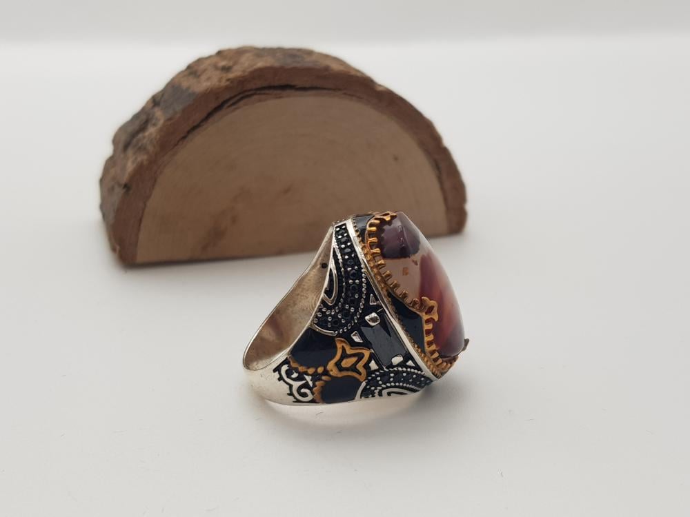 تم صناعة الخاتم يدويًا من العقيق اليماني الأصلي وتم صناعة التفاصيل الخارجية من الفضة النقية الخالص عيار 925 .