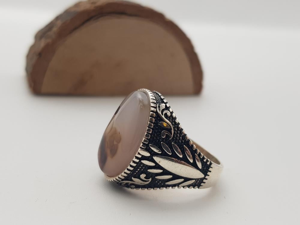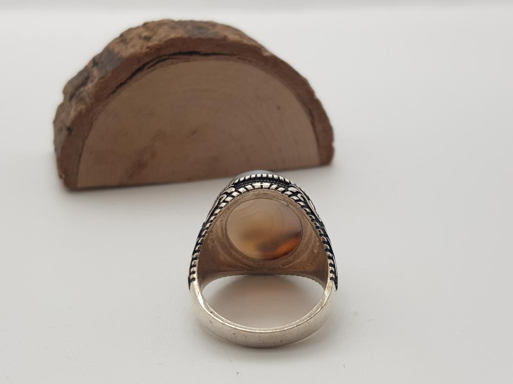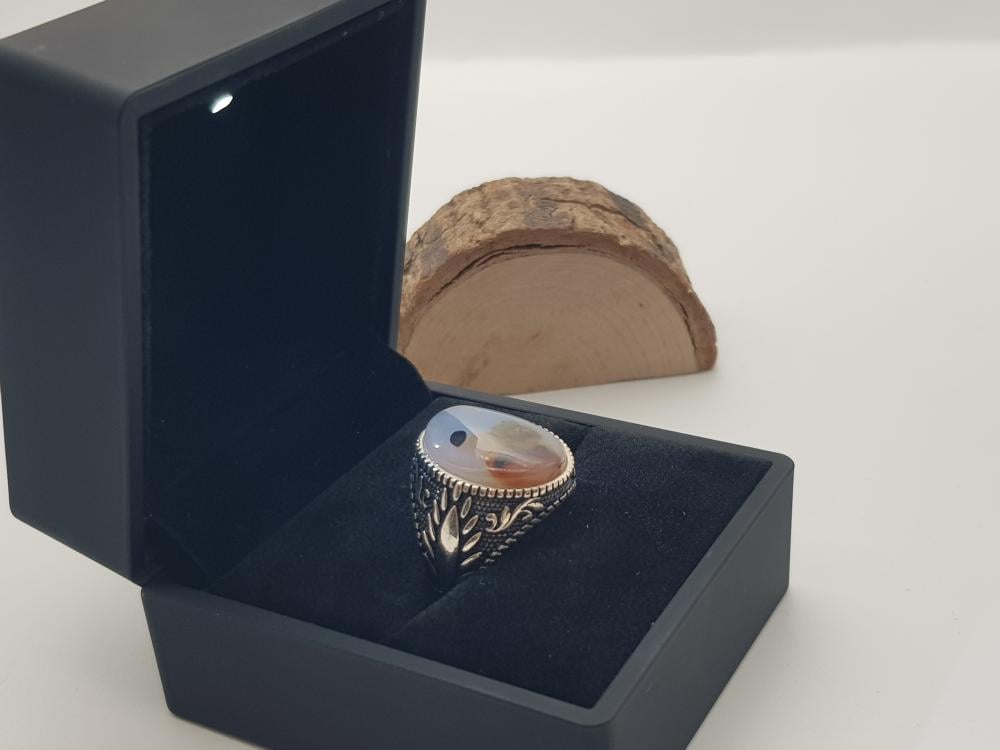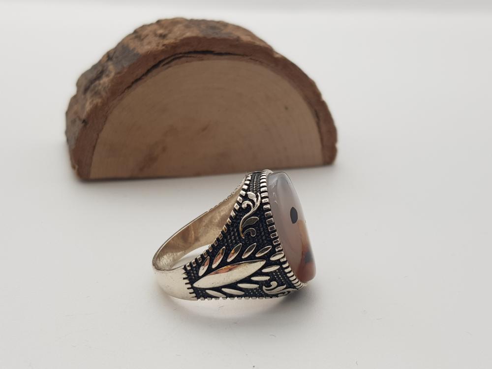 تم صناعة الخاتم يدويًا من العقيق اليماني الأصلي وتم صناعة التفاصيل الخارجية من الفضة النقية الخالص عيار 925 .