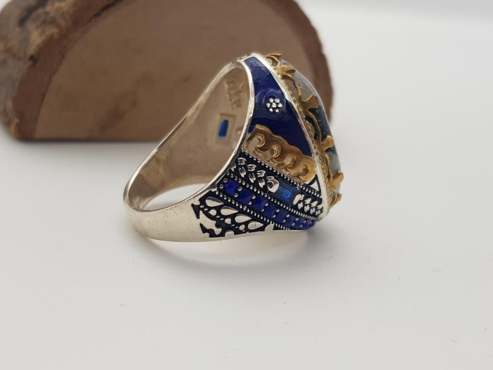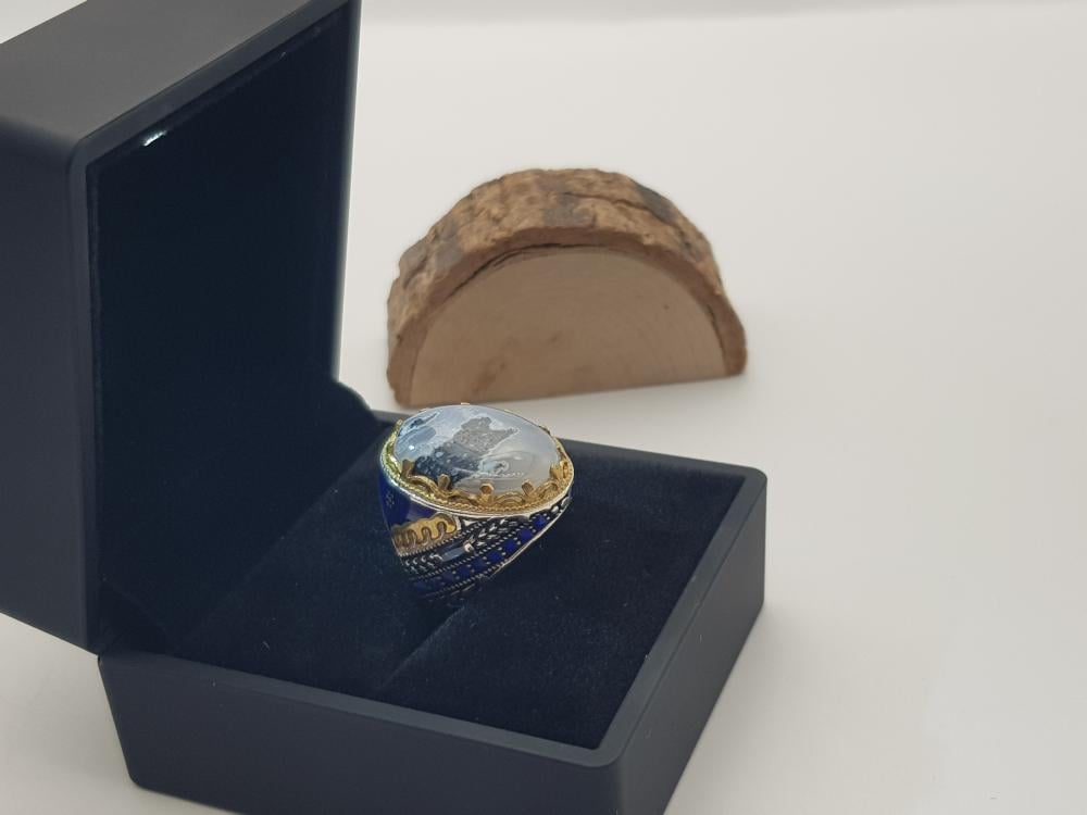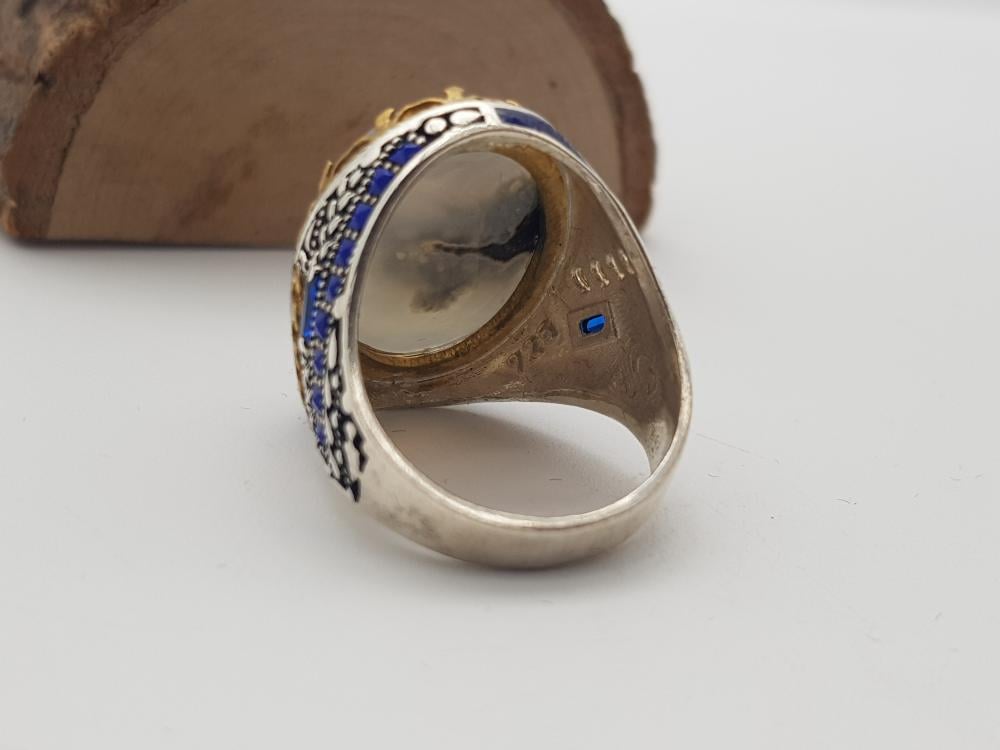 تم صناعة الخاتم يدويًا من العقيق اليماني الأصلي وتم صناعة التفاصيل الخارجية من الفضة النقية الخالص عيار 925 .