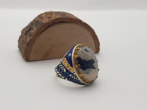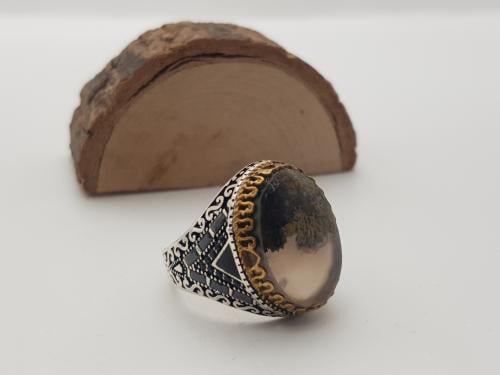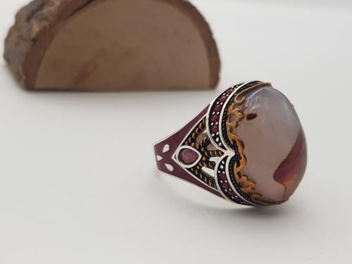 تم صناعة الخاتم يدويًا من العقيق اليماني الأصلي وتم صناعة التفاصيل الخارجية من الفضة النقية الخالص عيار 925 .