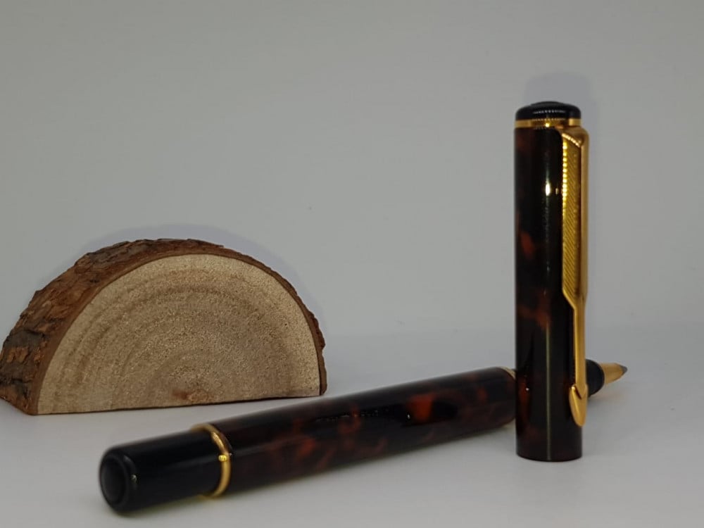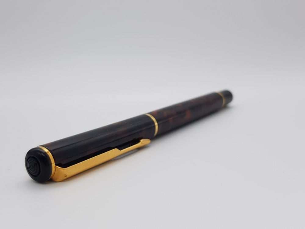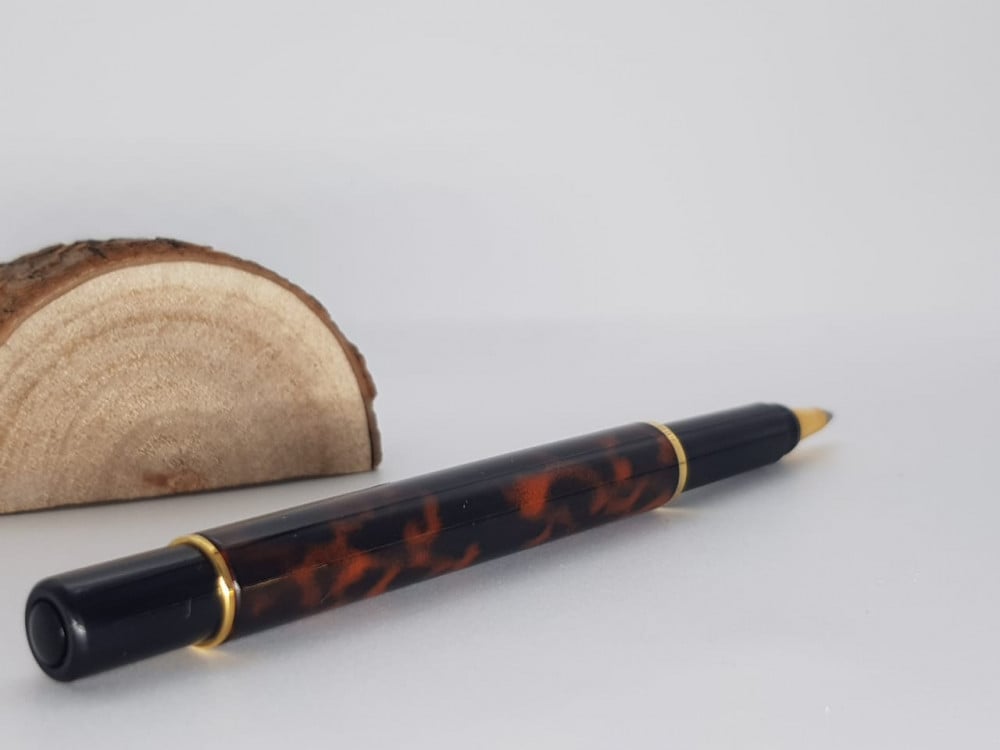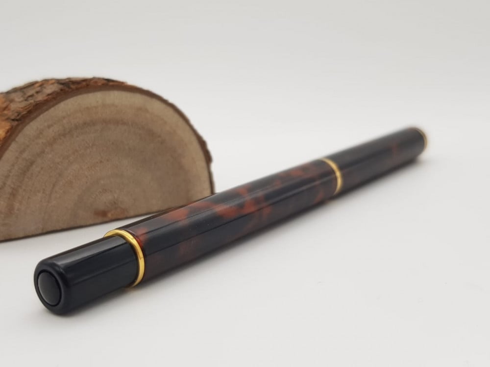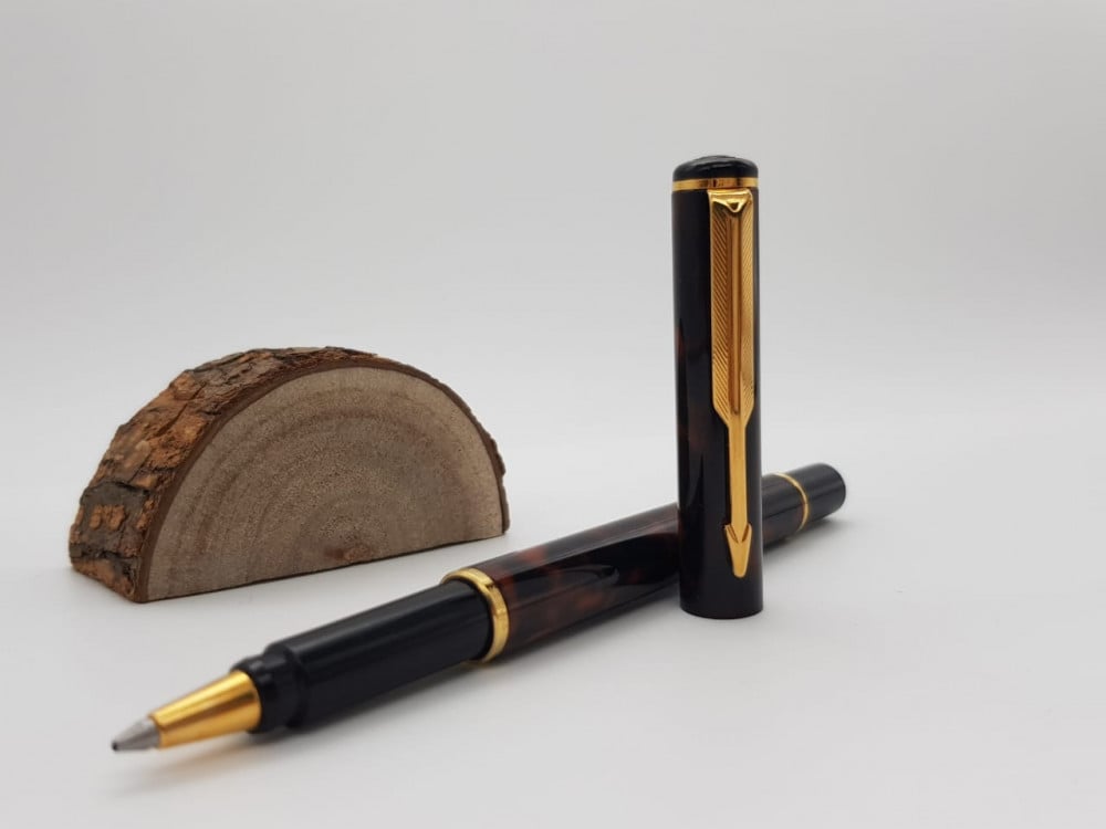 هيكل القلم :صنع هيكل القلم من المعدن بالكامل ومطلي باللون العودي المموج مع مشبك وتفاصيل مطلية بالذهب الخالص.